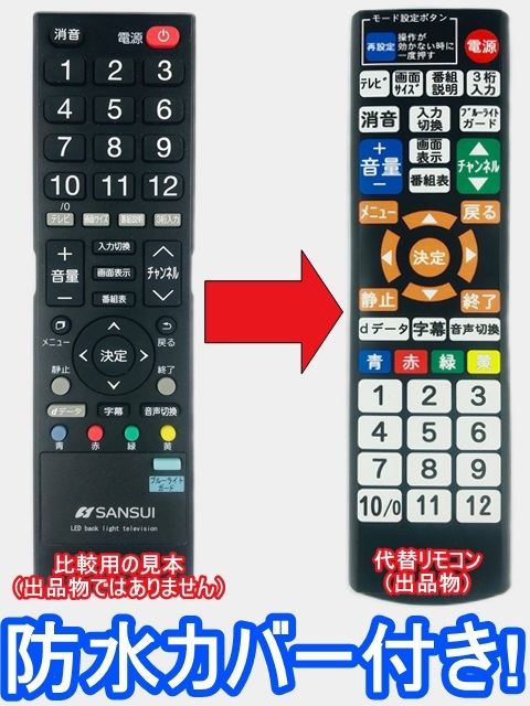 - 【代替リモコン135a】防水カバー付 SANSUI RT-004 互換 送料無料 (オーエン DOSHISHA ドウシシャ等用)