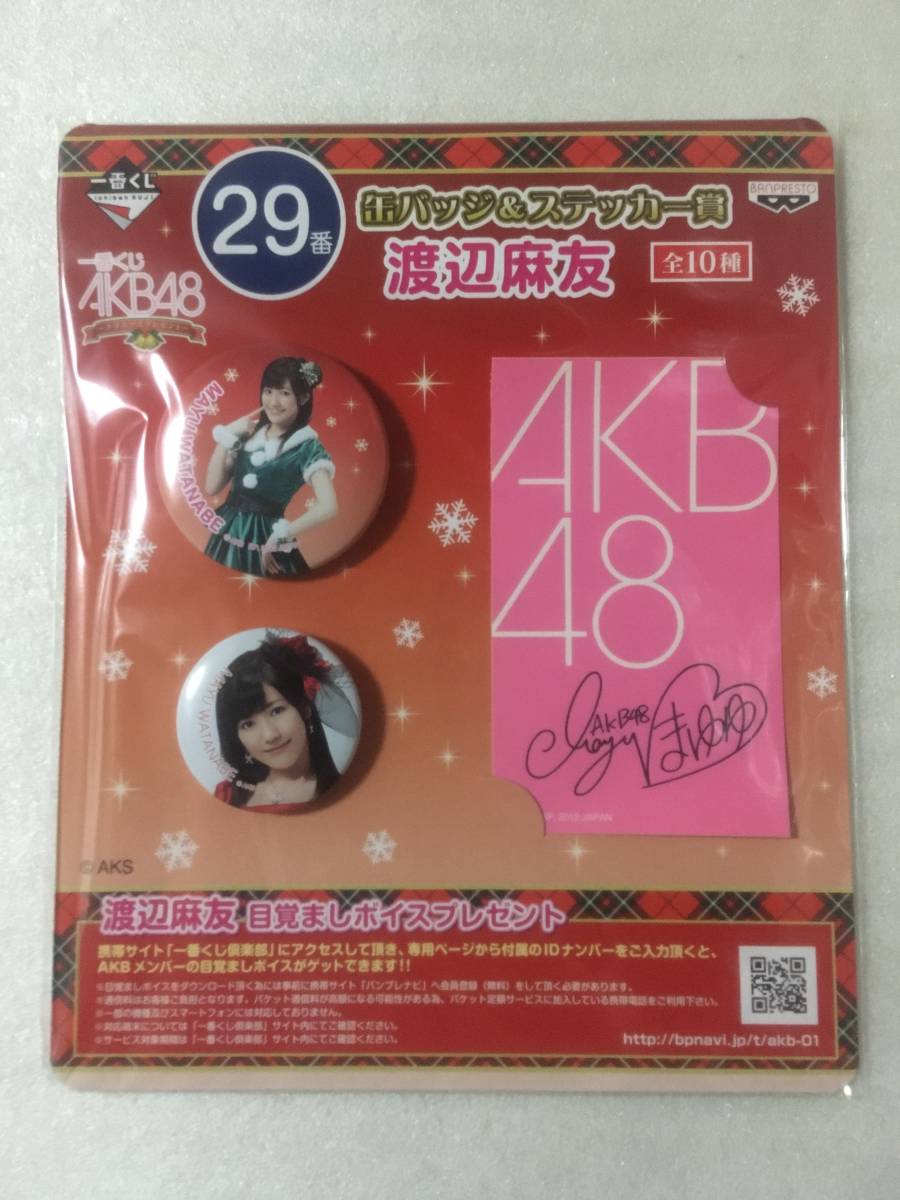 > AKB48 一番くじ クリスマス【未開封】29番缶バッジ&ステッカー賞 渡辺麻友 2012年