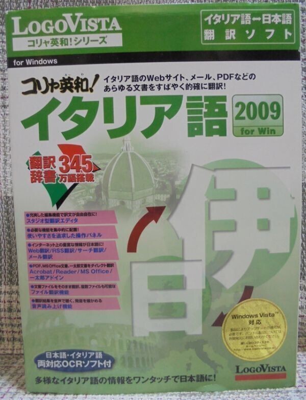 - ○LogoVista コリャ英和!「イタリア語 2009」 for Win(イタリア語⇔日本語 翻訳ソフト)未使用品 Windows