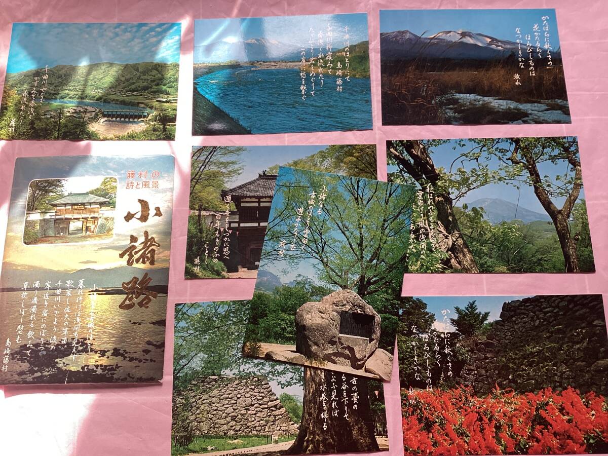 - 絵葉書 8枚 小諸路 島崎藤村 詩 風景 小諸なる古城のほとり 浅間山 懐古園 牧野氏 千曲川旅情の詩 小諸城 追分原 ポストカード 絵はがき