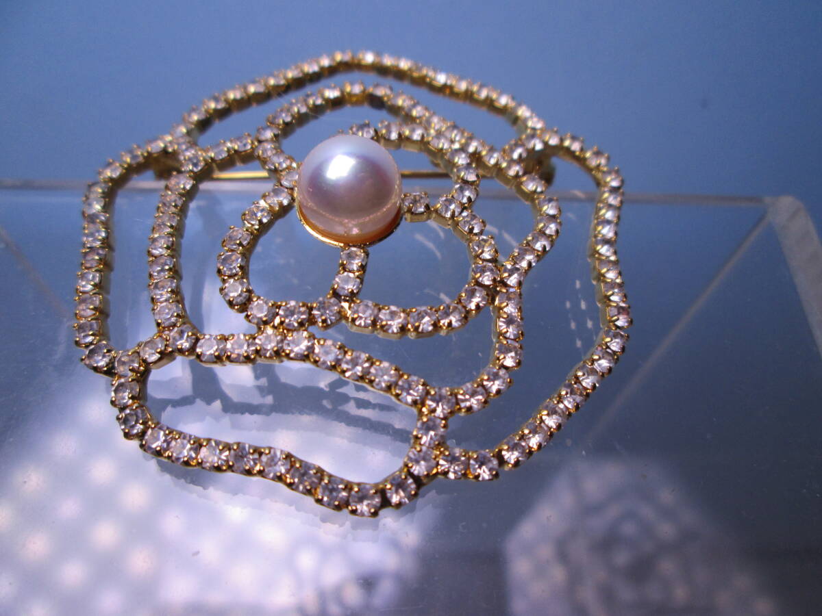 - ☆ラインストーン/パール 薔薇のブローチ 10g パーティー・コスチュームジュエリー