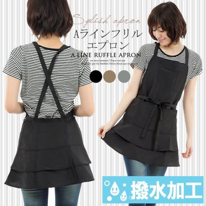 - ネイリスト エプロン ブラック ベージュ 撥水加工 Aライン フリル かわいい おしゃれ お尻が隠れる