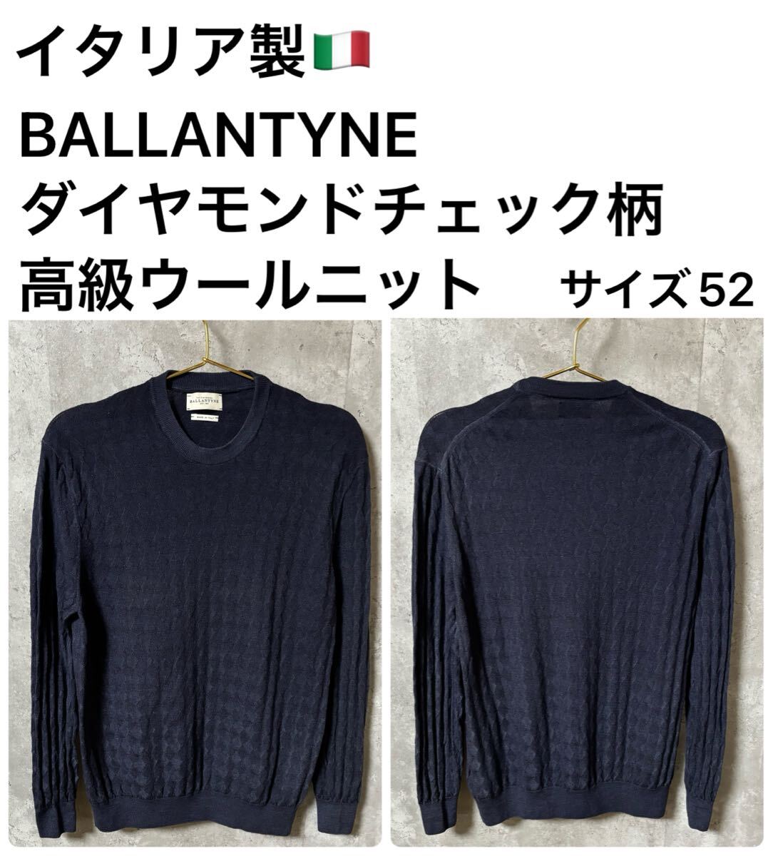 > ◆美品◆イタリア製 BALLANTYNEダイヤモンドチェック柄 高級ウールニット ネイビー系 サイズ52 定価50000円位 0107hy