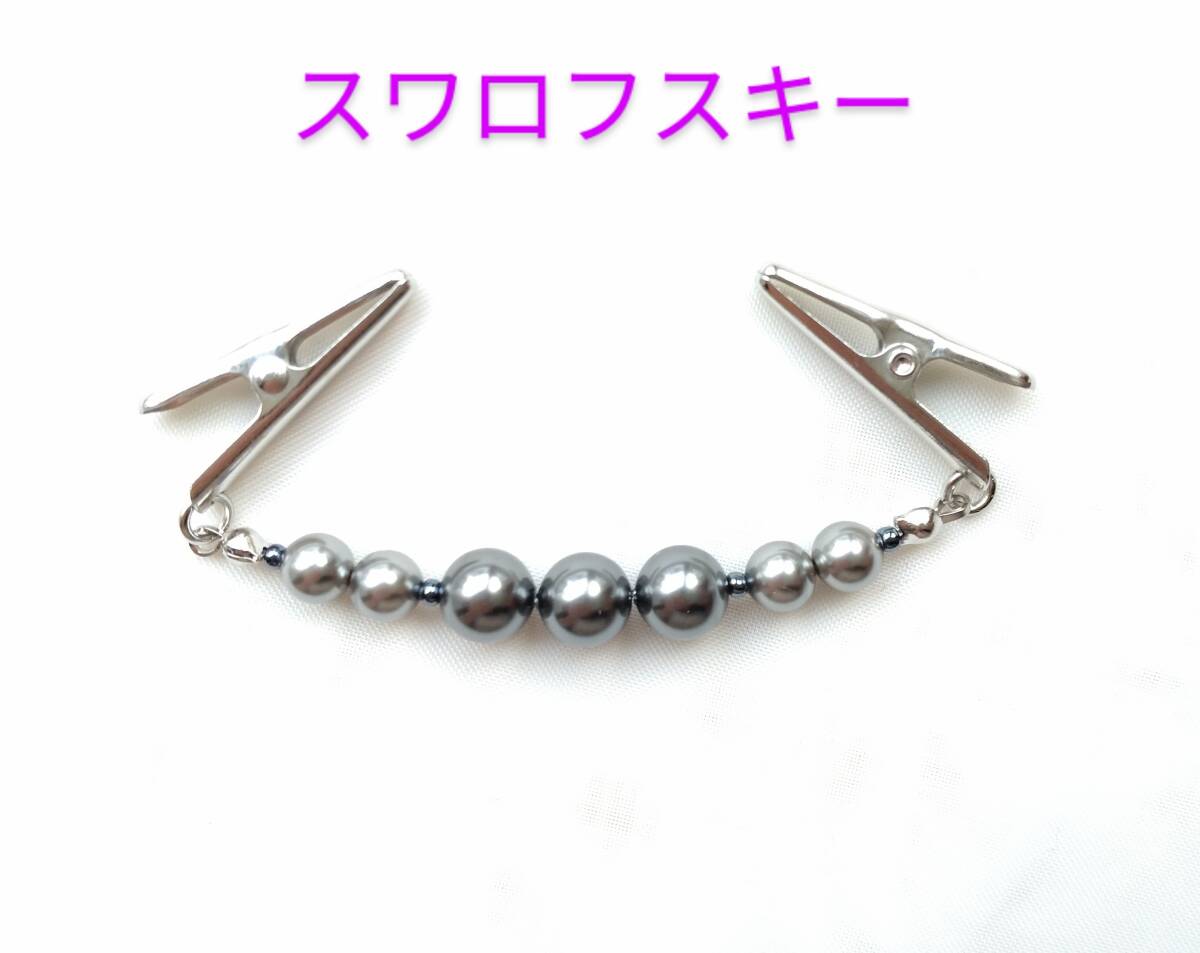 - ダークカラーのストールクリップ スワロフスキーパールのショール留め カーディガンクリップ