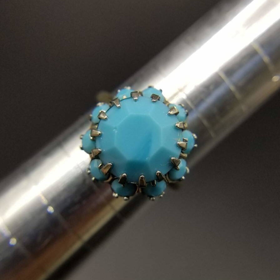 - ターコイズブルー お花 ヴィンテージ フラワー リング 指輪 レトロ キュート ファッションジュエリー 存在感 AAX-2①