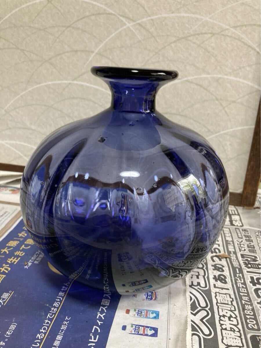 - アンティーク?骨董品?ガラス製、花瓶、花器、壺?青 43です。