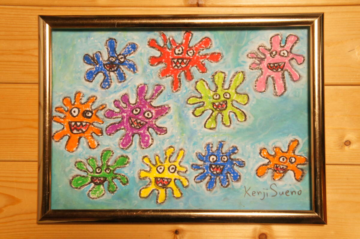 > 【アメーバくん】手描き 肉筆 クレヨン画 絵画 A4サイズ 765,Crayon painting, oil pastel painting, original art