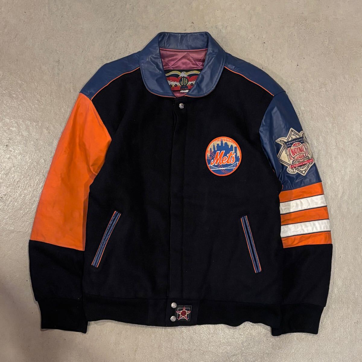 > 【USA製】90s JEFF HAMILTON ジェフハミルトン レザー ウール スタジアムジャケット スタジャン メンズ M NY.Mets メッツ MLB vintage 正規