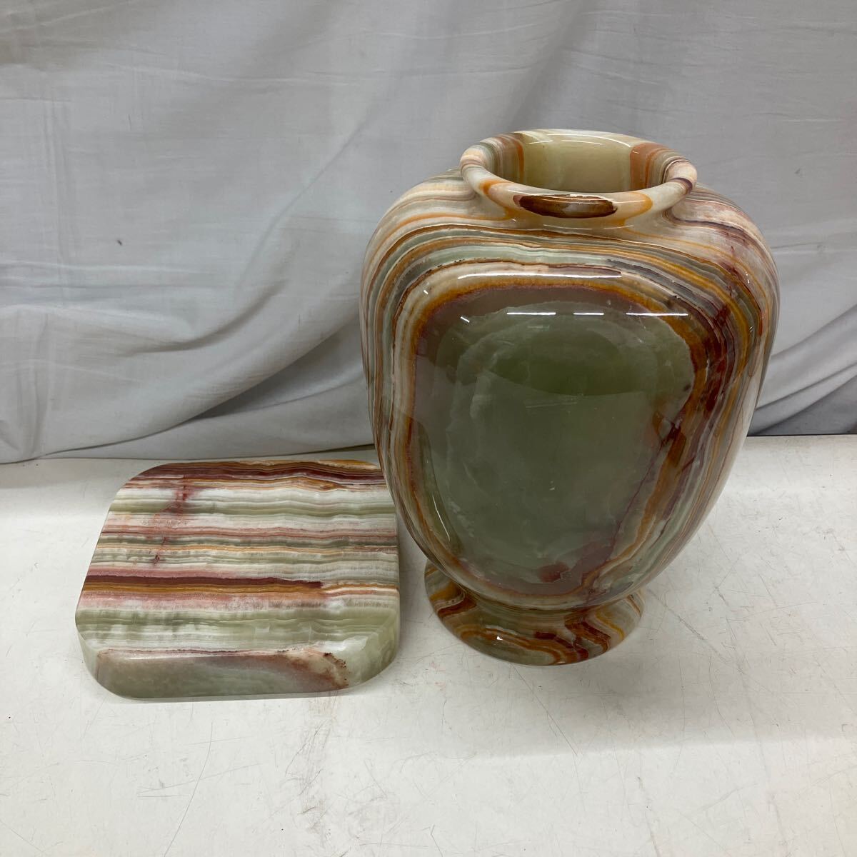- 79●70109-① 花瓶 花器 フラワーベース 壺 台座付き 大理石 ? くりぬき 石製 現状品