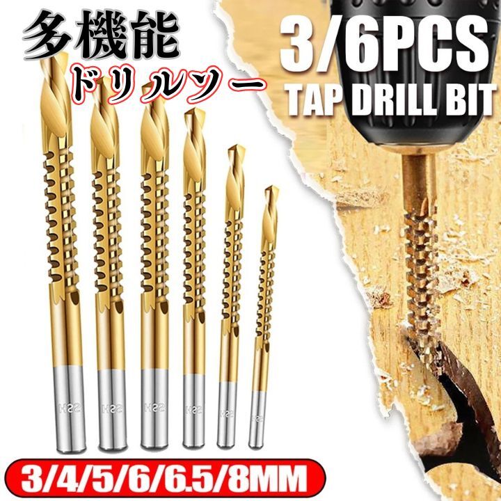 - 多機能木工ドリルソー6本セット ドリル+ミーリングカッターセット穴あけドリルとミーリングカットがこれ一つ