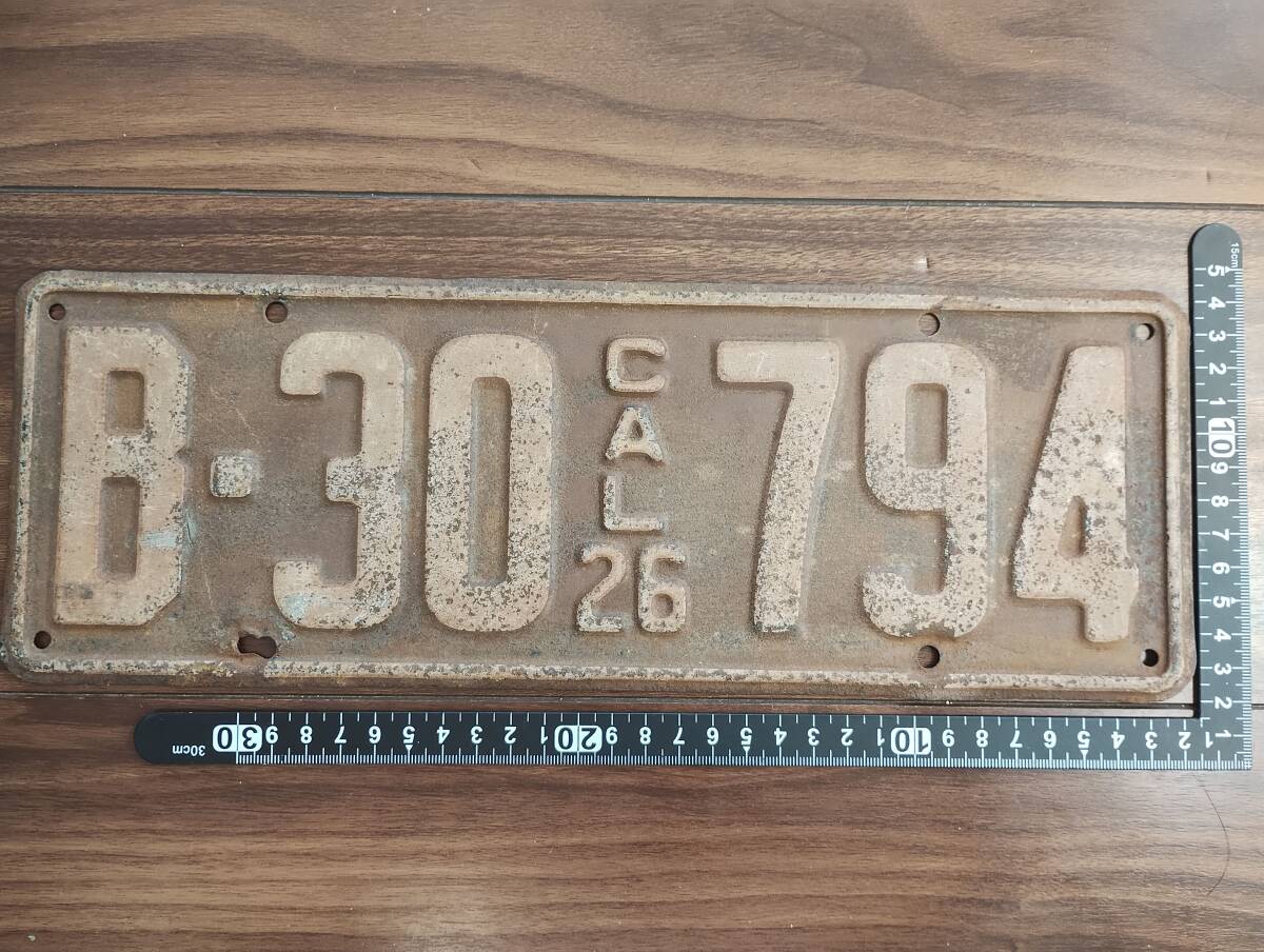 - ◆新品U.S.ヴィンテージ【B-30 794】本物1926カリフォルニア輸入ライセンス・プレート①枚のみ限定◆