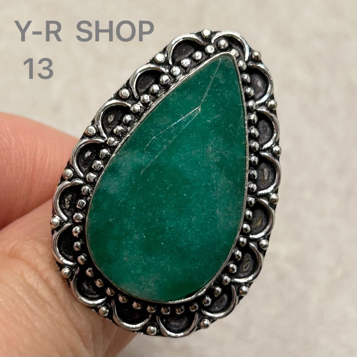 - 天然石★13号★雫型エメラルド のアンティーク調リング★レディース指輪シルバー 925刻印カラーストーンエスニックアジアン雑貨新品Y-R卸売