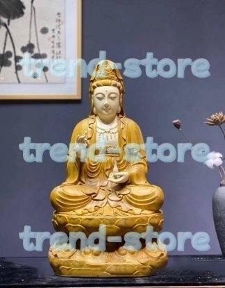 - 観音菩薩像 座像 仏教美術 置物 水瓶 功徳水 木彫 仏像 観音様 観音菩薩 観世音菩薩