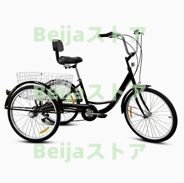 - お見逃しなく!大人用三輪車 24インチ三輪自転車 高齢者用 座席高さ調節可能 アショッピングバスケット付き 自転車 組立品 123