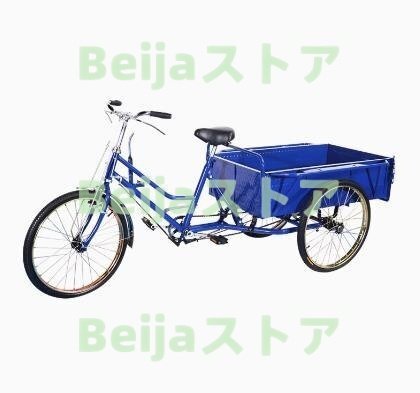 - 前輪24インチ・後輪20インチ 大人用貨物三輪車 載荷重80kg ダブルブレーキ 三輪車 大容量 後カゴ付き ブルー