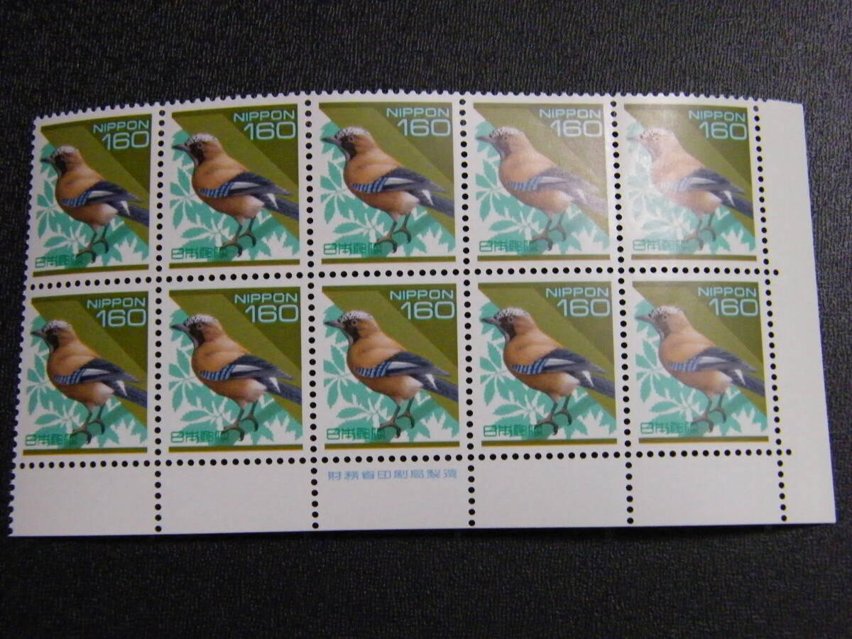 - カケス 160円 銘版「財務省印刷局」 10枚ブロック 未使用 1994年シリーズ