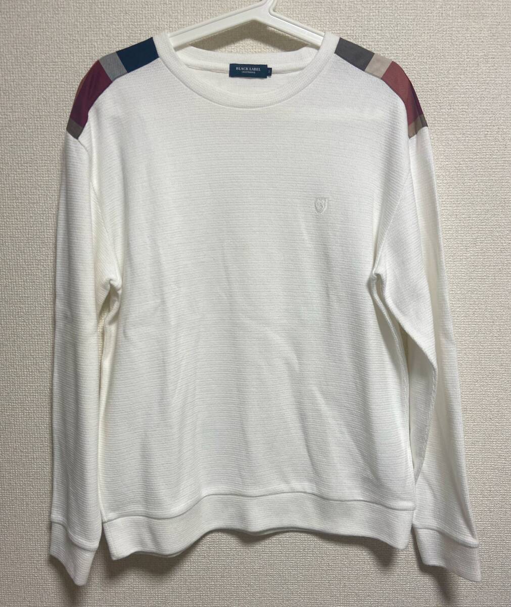 > 美品 ブラックレーベルクレストブリッジ 肩チェック ニット カットソー サイズM 白 BLACK LABEL CRESTBRIDGE