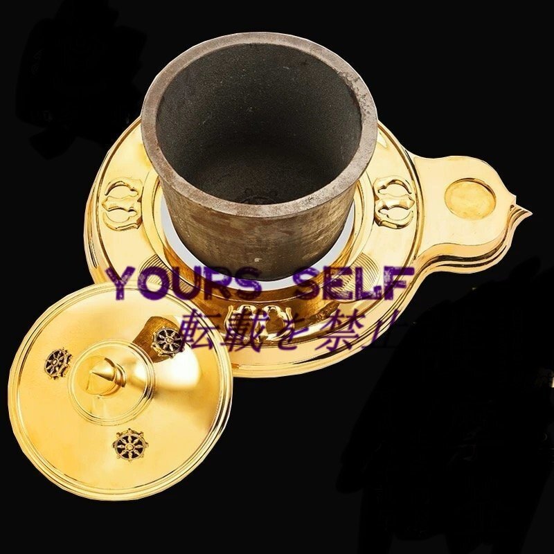 - 「密教法具 寺院仏具」極上品 護摩用仏具 護摩釜 炉 蓋付 護摩焚き 護摩壇 仏具 仏教美術 祈願 祈祷 真鍮製 直径41cm