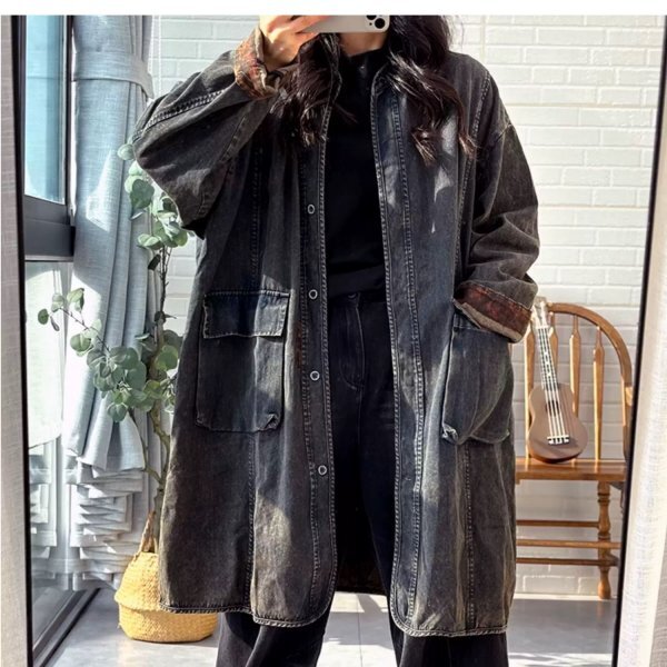 - gl デニム コート バッチ 羽織物 洋服ミックス アンティーク風 ロマンファッション チュニック ゆったり 高質