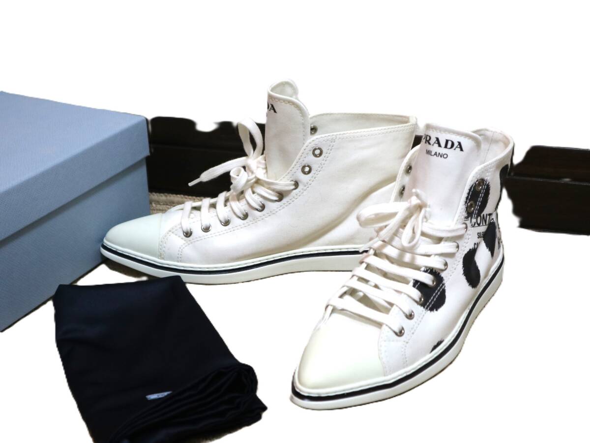 - 【即決】未使用 PRADA プラダ◆スニーカー レディース ホワイト/ブラック キャンバス/ラバー 37.5 yu