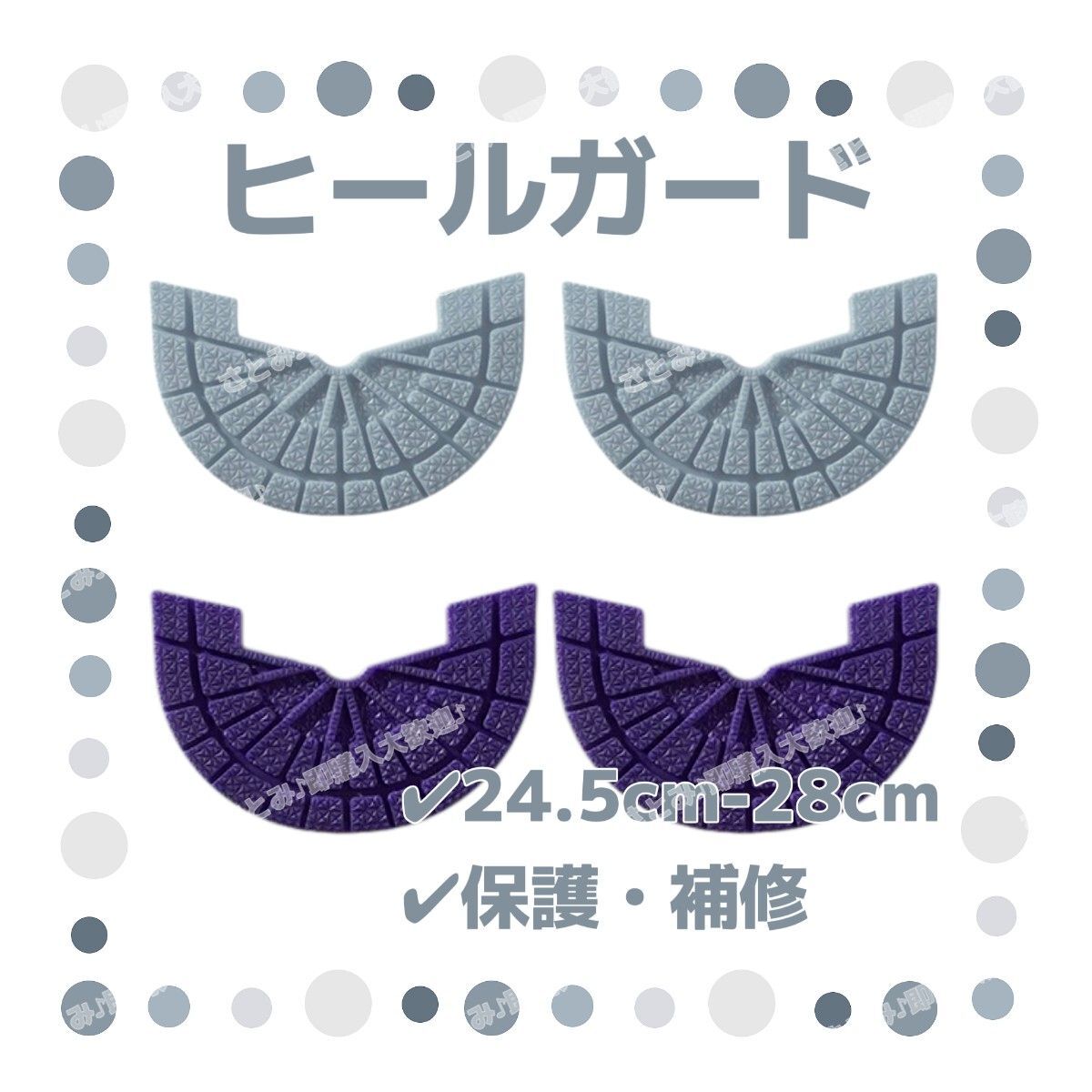 - ヒールガード 4枚セット 2足分 ソールガード スニーカー プロテクター 保護 補修 24.5cm-28cm グレー パープル