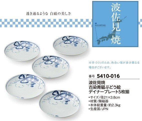 - ☆★☆新品 波佐見焼 古染青磁ぶどう絵デイナープレート5枚揃 ☆★☆