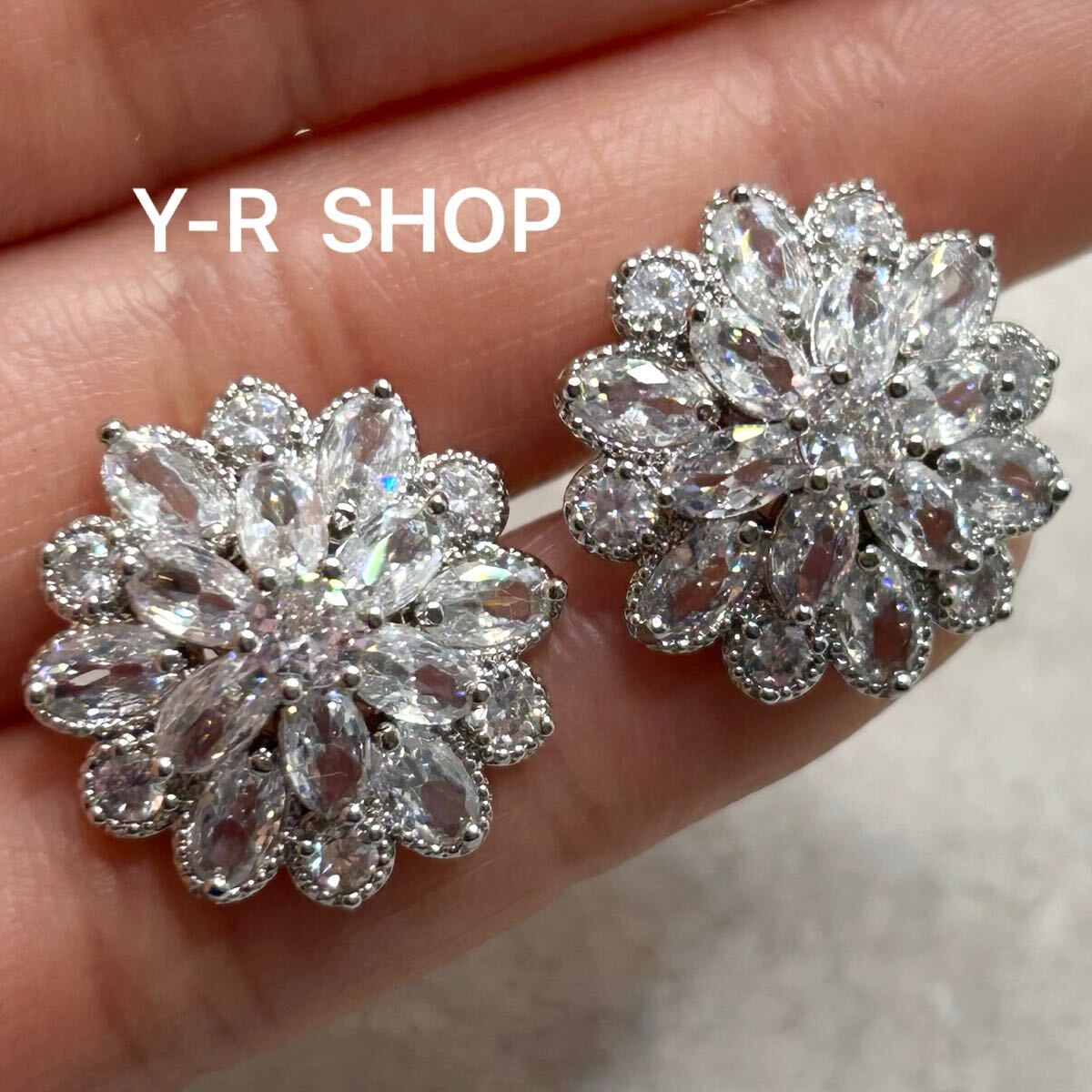 - ホワイトトパーズたっぷりのお花デザインゴージャスピアス★レディースシルバーアクセサリーキュービックジルコニア 新品Y-R SHOP卸売