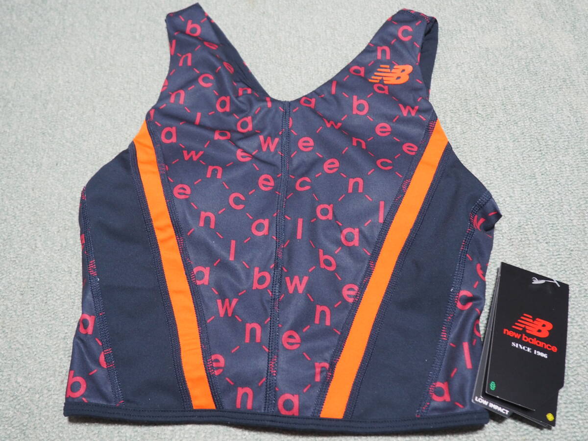 > 未使用保管品ニューバランスnew balanceスポーツブラ ミドルサポート Mサイズネイビー系ロゴ柄WT13116 6930円相当