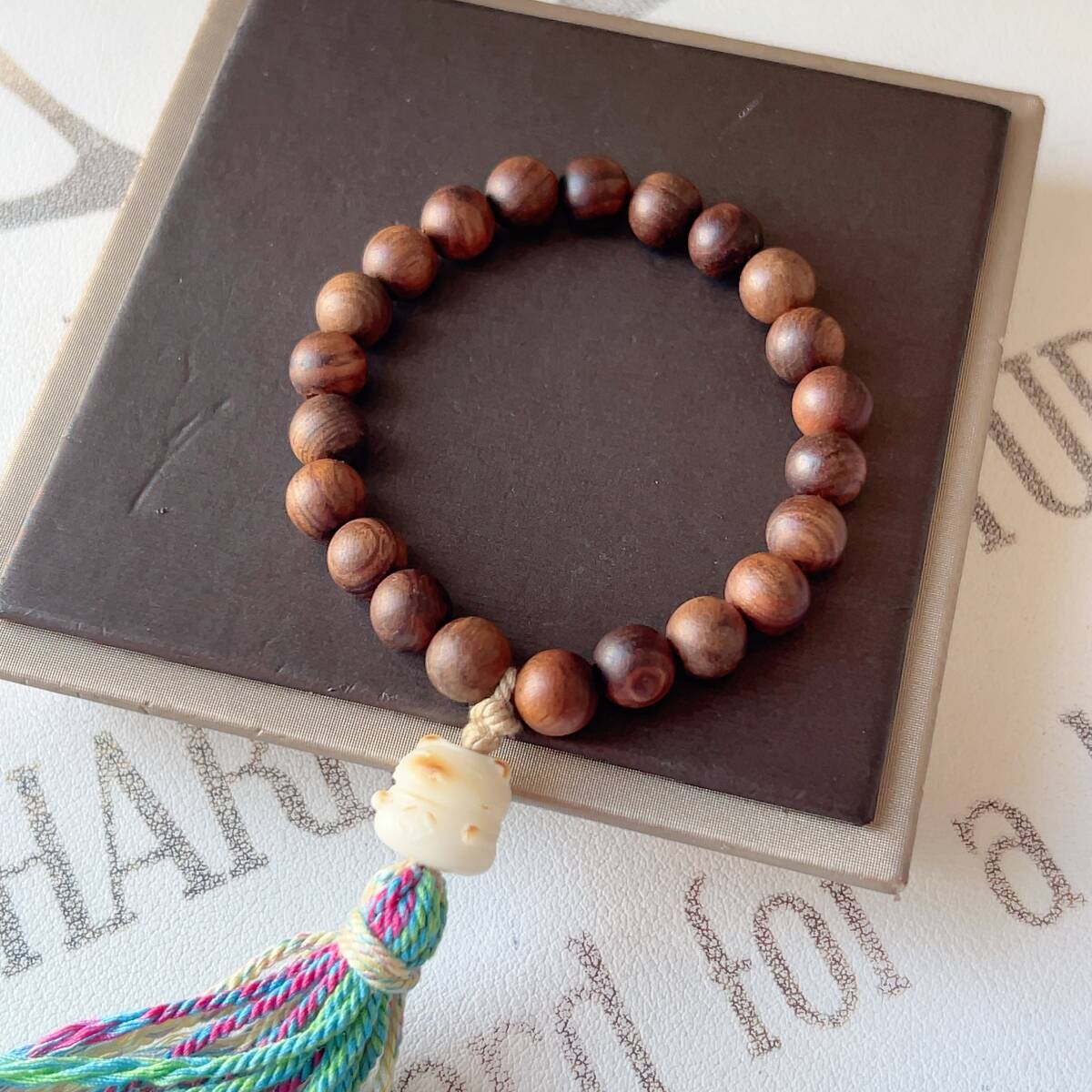 > ◇花梨木+白玉菩提(猫形)◇ブレスレット◇男女兼用◇天然木◇数珠・念珠・木珠◇巾着袋付き◇プレゼントにも 034B1137