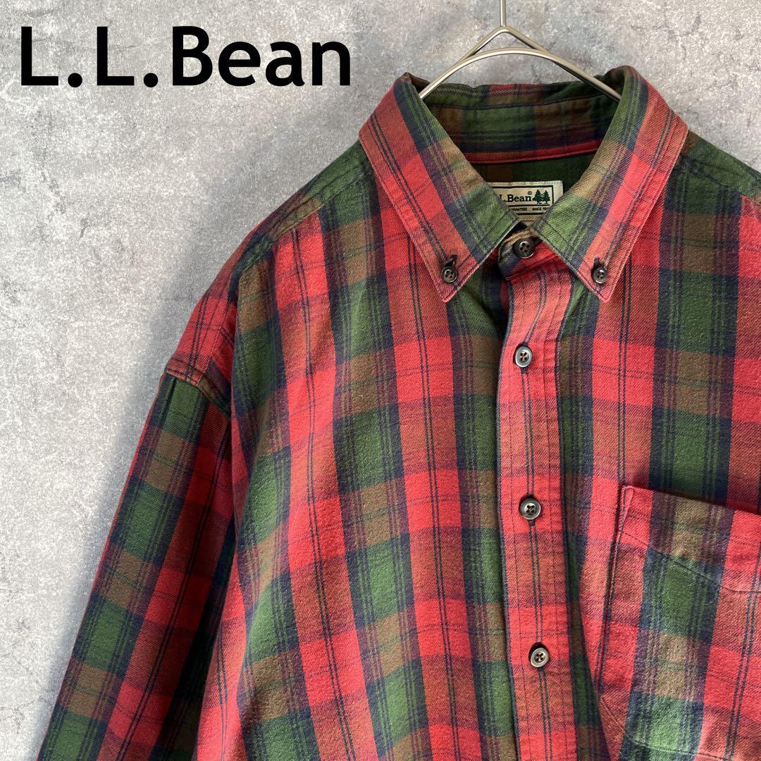 - L.L.BEAN チェック柄ネルシャツ 長袖 ゆったり Mメンズ 赤系L2