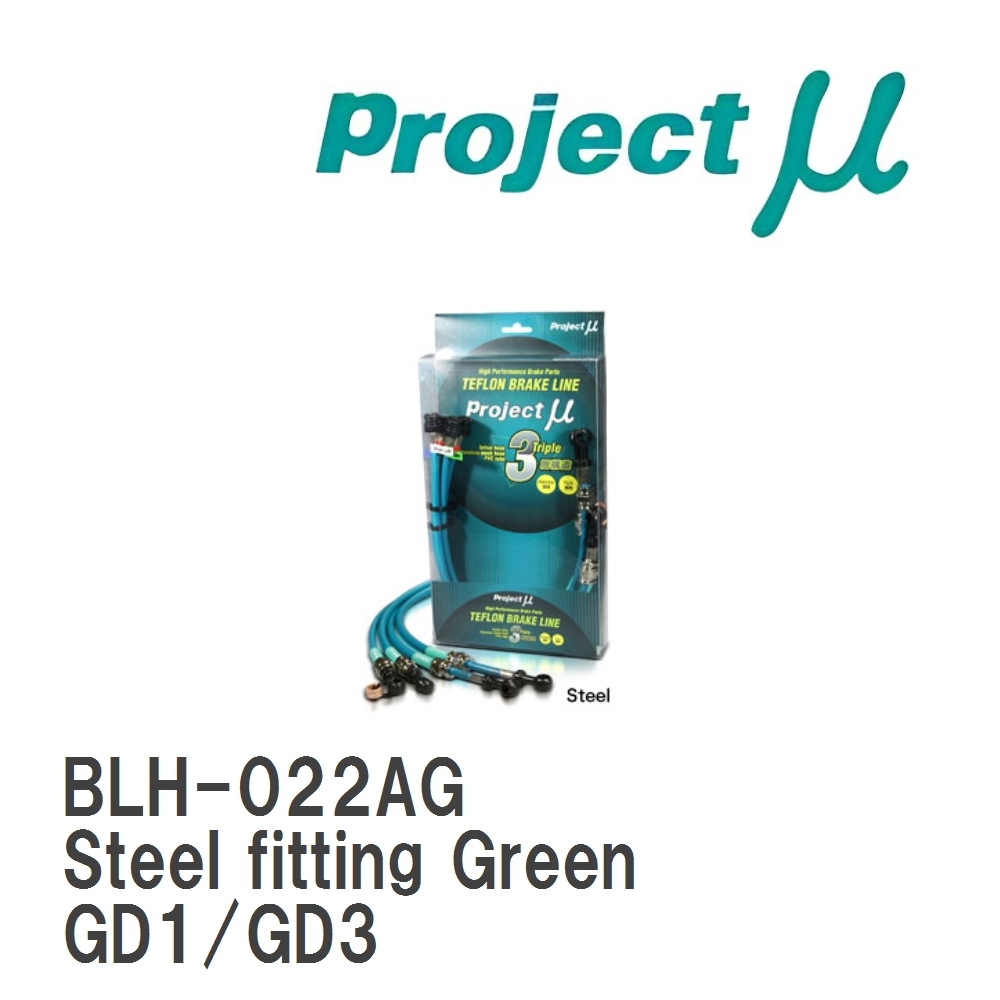 - 【Projectμ】 テフロンブレーキライン Steel fitting Green ホンダ フィット GD1/GD3