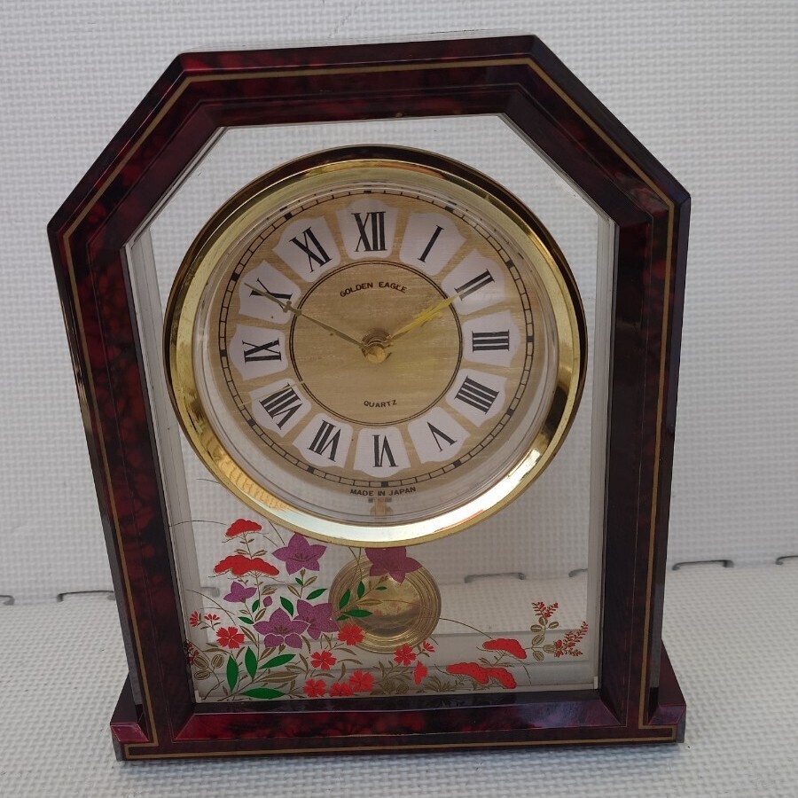 > GOLDEN EAGLE 置時計 ゴールデンイーグル 日本製 昭和レトロ コレクション 置き時計 アナログ クォーツ 花柄 フラワー