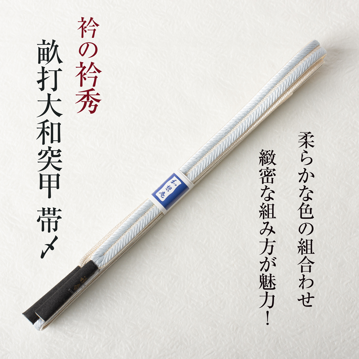 - 【衿秀の帯締め】 帯〆 畝打大和突甲 和想庵 (淡水色×生成り) リバーシブル 切房 襟の衿秀 日本製
