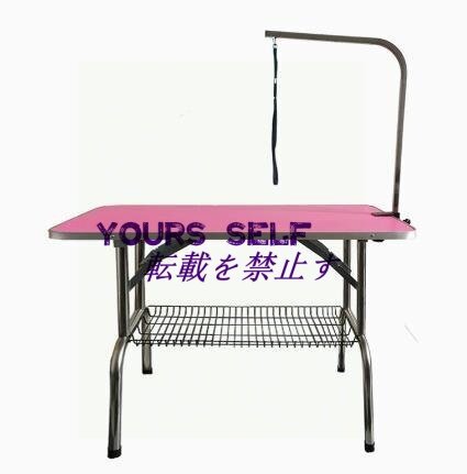 - ペット用 トリミングテーブル トリミング台 ペットトリミング 台面 アジャスター付 折り畳み リード紐付 ステンレス鋼 ゴム 収納カゴ付