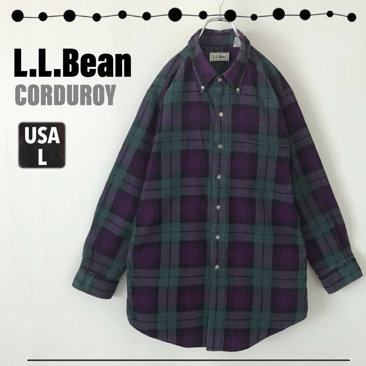 - L.L.Bean エルエルビーン★コーデュロイBDシャツ★チェック柄★USAメンズL (LLBEAN) 2401J041