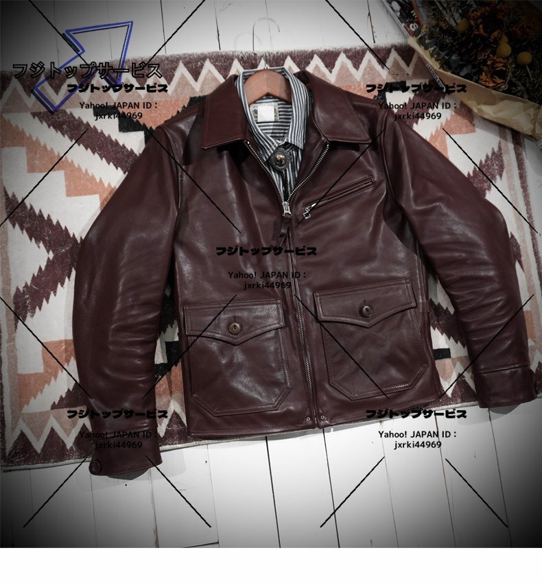 > 超人気☆カウハイド トラッカースタイル シングルライダース レザージャケット バーガンディ オイルレザー 牛革 サイズ選択可