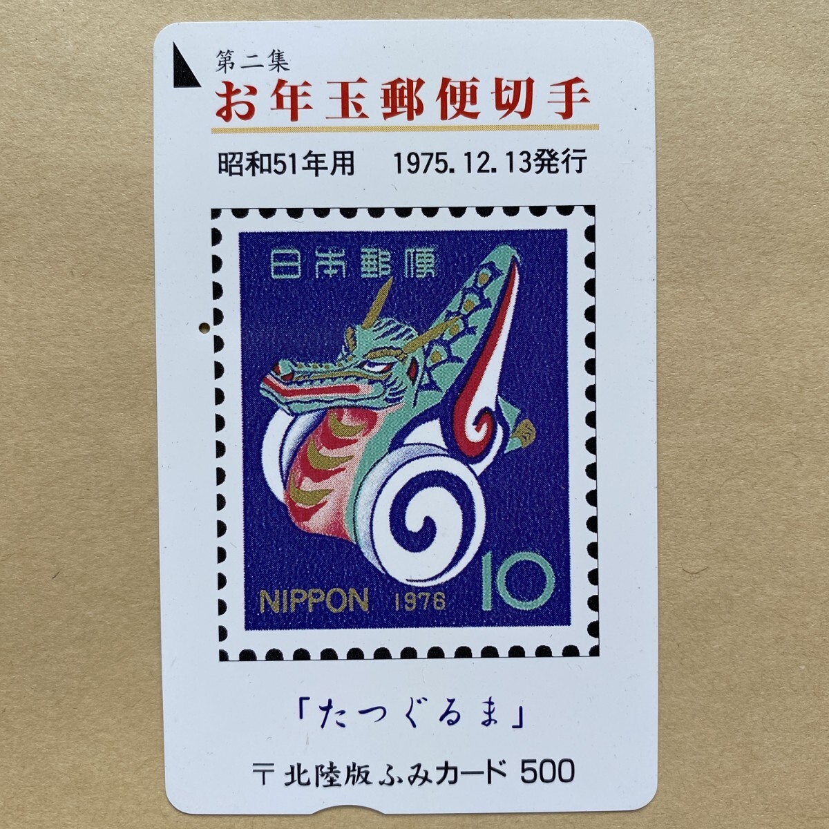 - 【使用済】 ふみカード 北陸版 お年玉郵便切手 昭和51年用 1975.12.13発行 「たつぐるま」