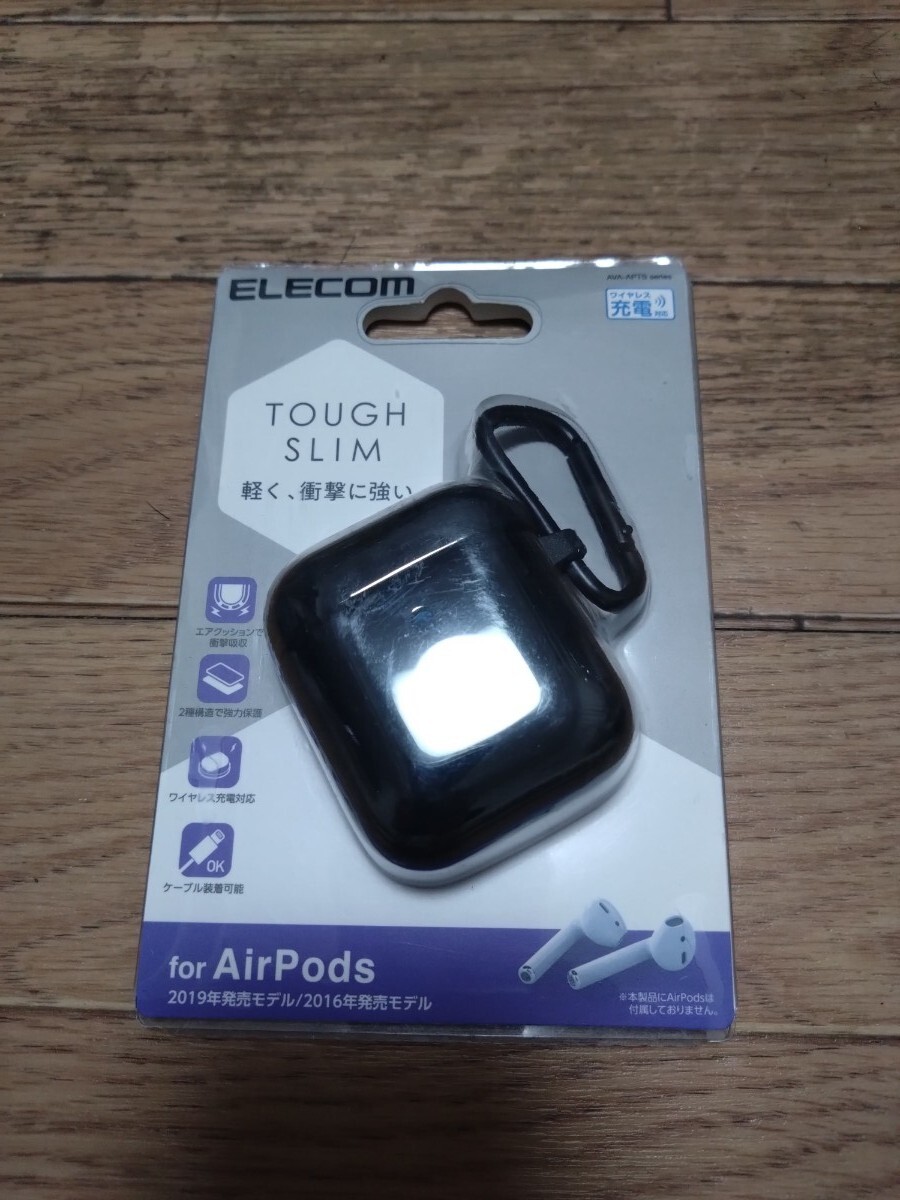 - ★ 新品・送料無料 ELECOM AirPods用 Tough Slimケース ブラック ワイヤレス充電対応 カラビナ付 AVA-APTSBK 2016年/2019年発売モデル対応