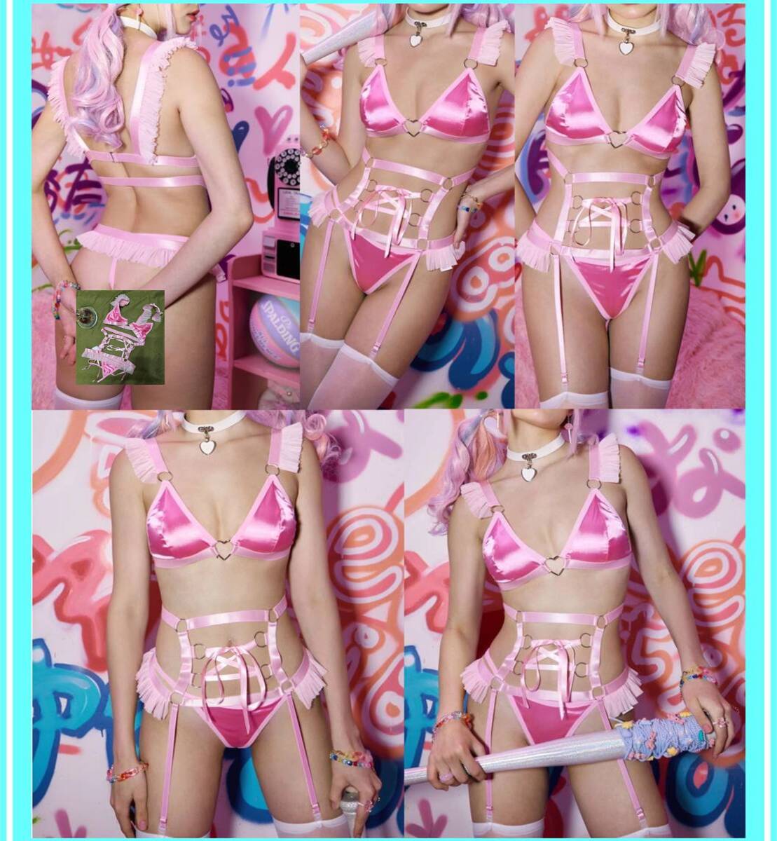 > ★超素敵★ガーターデザイン★コスチュームセット★光沢ピンク★サテン★キュート★大人可愛いくチャーミング★海外サイズS★V37S