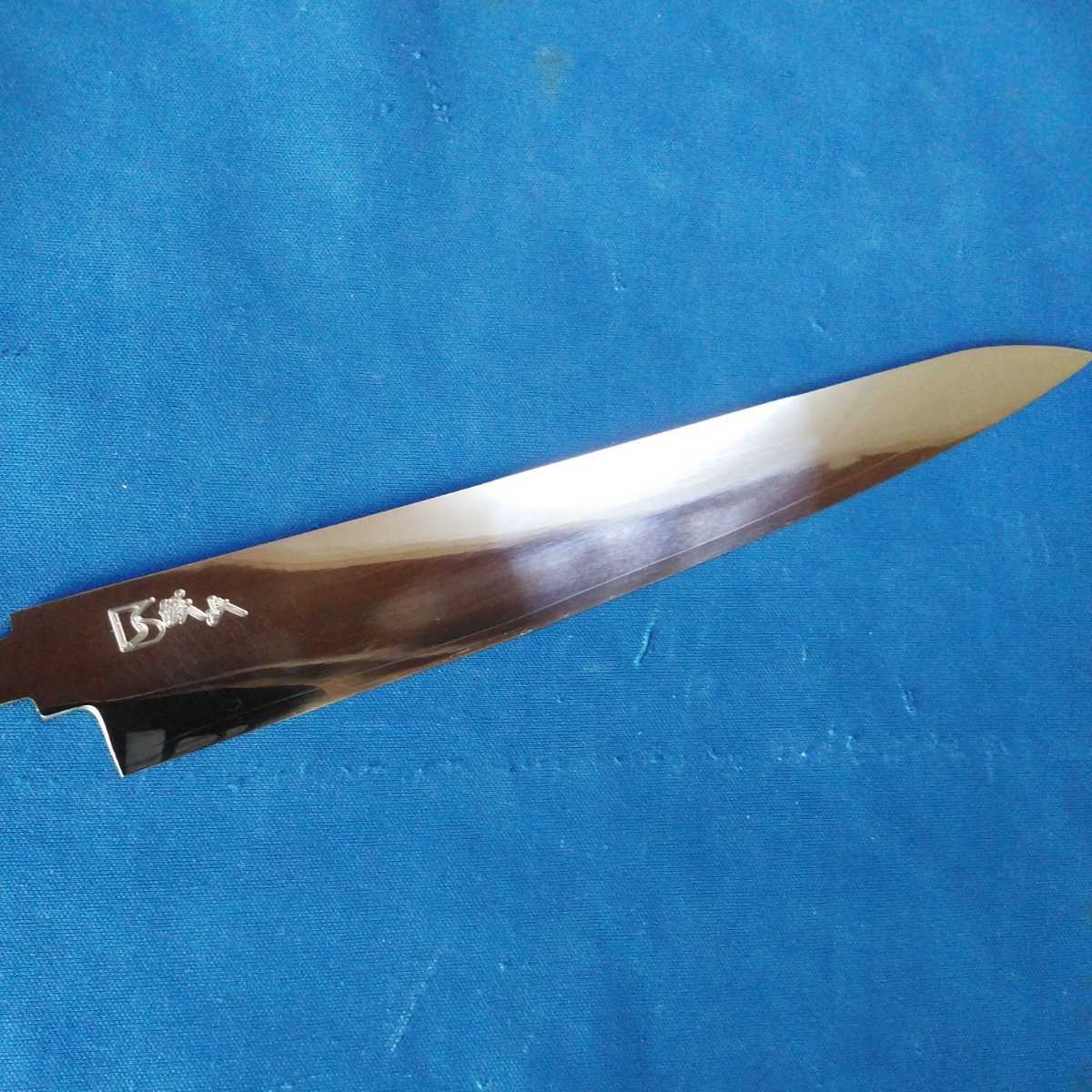 > 城山刃物製作所(堺業務用刃物メーカー直売)七寸和ペティ ZDP189とSUSの三層鋼 両鏡面 研ぎ(伝統工芸士山塚忠義氏作)黒檀上下白水牛柄