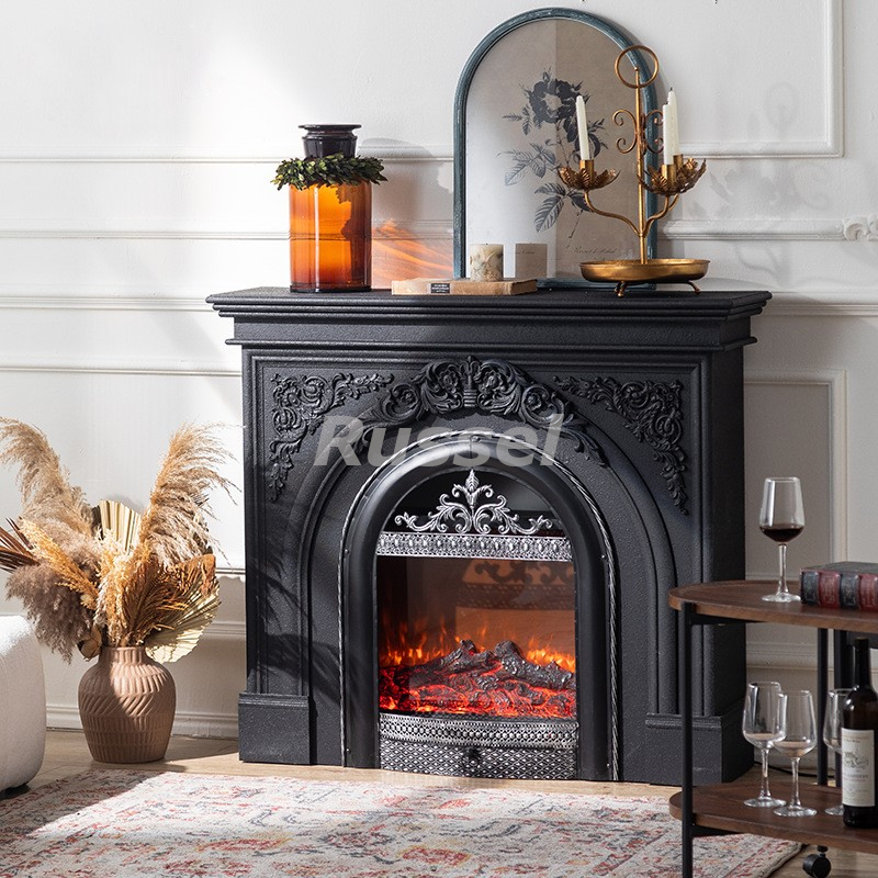 > マントルピース ラグジュアリー ヨーロッパ風 レトロ調 おしゃれ かわいい インテリア 暖炉 飾り棚 ディスプレイ レストラン ブラック