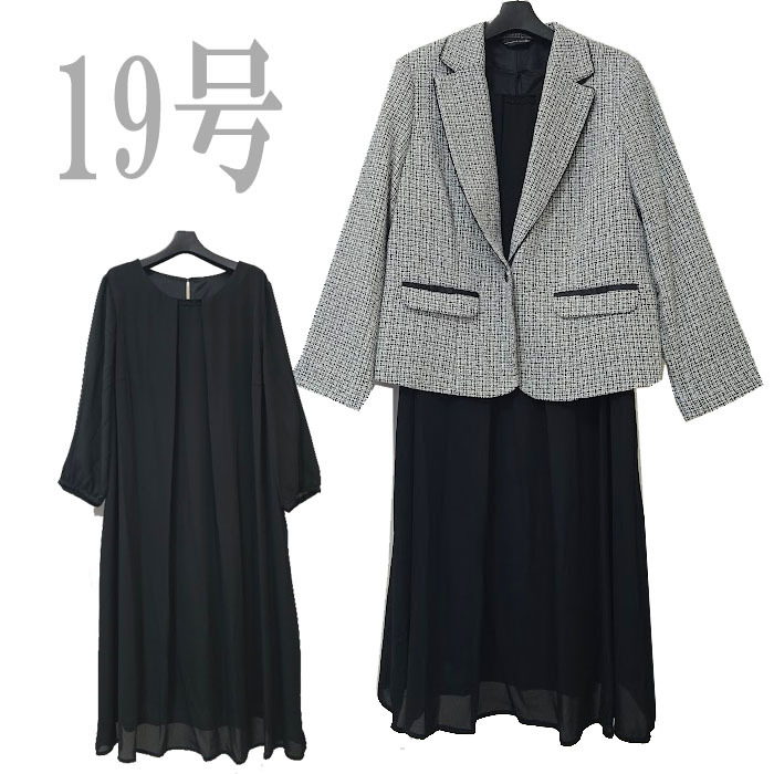- ●新品/スーツ/2点/ジャケット/ワンピース/19号/黒系/ツイード調/レディース●&1285