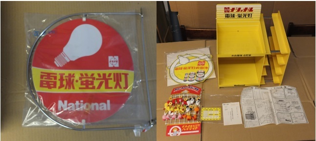 > 【未開封品】National 電球 陳列棚 & 吊り下げPOP &回転看板 セット! ラック 店頭用 陳列棚 昭和レトロ 当時物 ナショナル