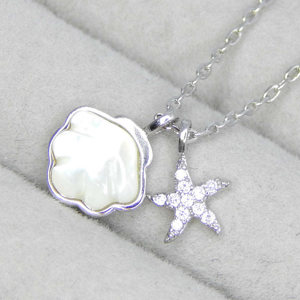 > 残り1点★新品★送料無料 シェル貝殻&ヒトデ CZダイヤモンドネックレス シルバー925 プラチナ仕上 レディースアクセサリー ジルコニア