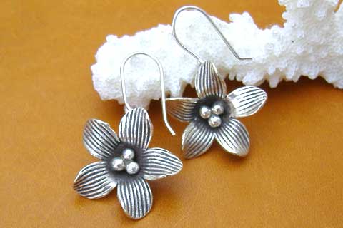 - ◆カレン族シルバービーズ 花ピアス63◆フラワー◆カレンシルバー