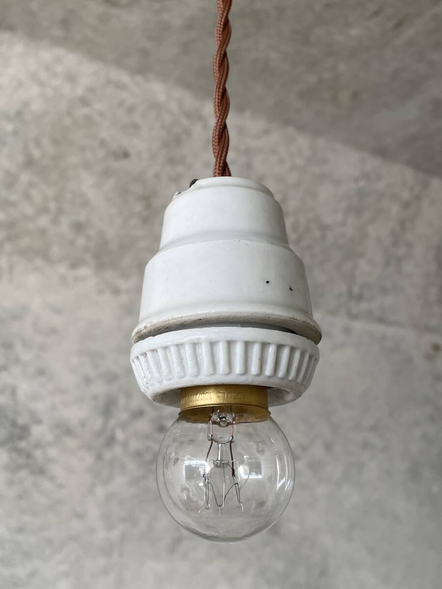 > T14. フランスアンティーク 大型 吊り下げ ライト ソケット ランプ 陶器 仏 北欧 照明 アトリエ インダストリアル カフェ レトロ