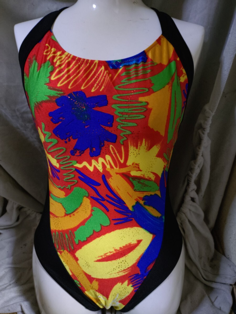 - М3955◆michelle◆セレブなブラック×オレンジ模様柄ワンピース水着◆9М