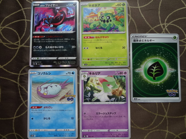 > 未使用 ポケモンカード 5枚セット ガラルファイヤー 基本草エネルギー サボネア キルリア コソクムシ 送110