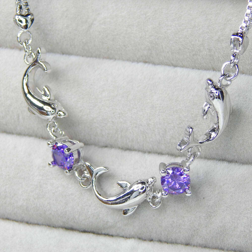 - 再入荷★新品★送料無料 イルカ 2連CZアメジストダイヤモンドブレスレット シルバー925 プラチナ仕上 レディースアクセサリー ジルコニア