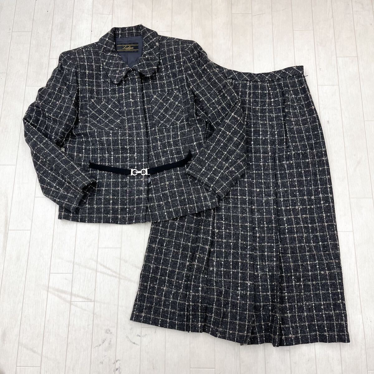 > K4★① Leilian レリアン セットアップ ジャケット スカート チェック 日本製 9 グレー レディース